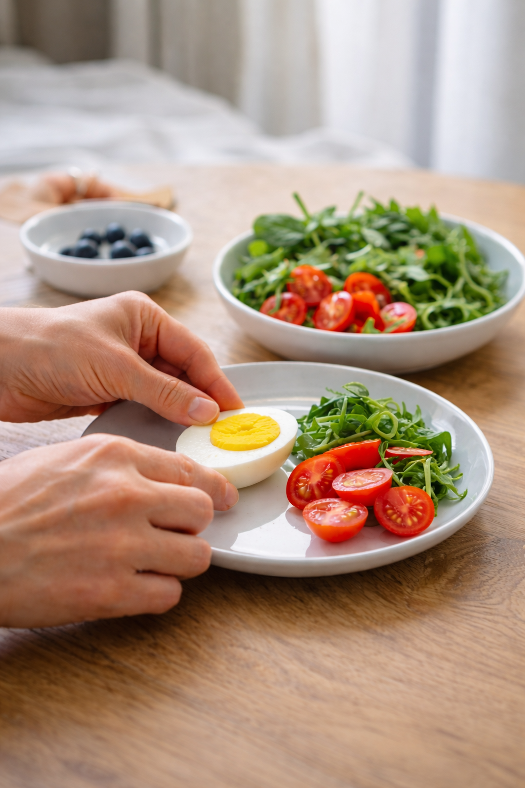 - 밥 소량 + 두부/생선 + 익힌 채소